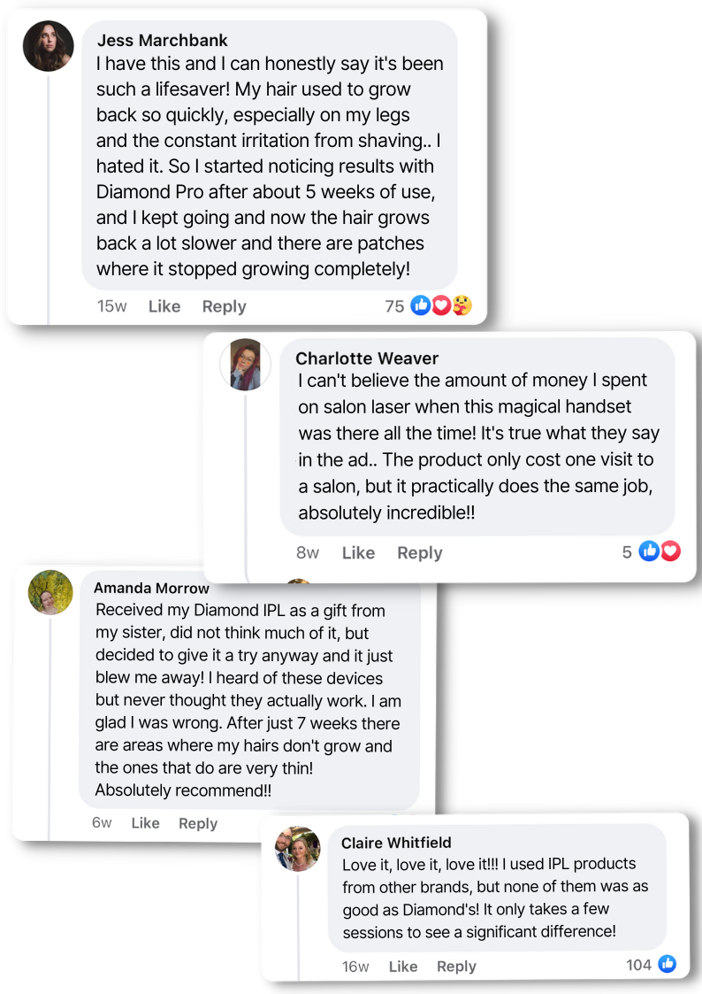 "I stopped doing salon laser ever since I got Diamond IPL, I can get the same results at home!"